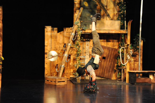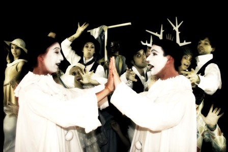 Teatro essenziale e universale dove il corpo dell'attore é utilizzato come principale instrumento dell'azione drammatica, lo spettacolo è un mimodramma poetico e ironico che riassume in maniera derisoria et ragica il destino dell'essere umano.
